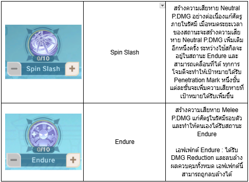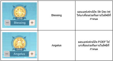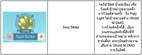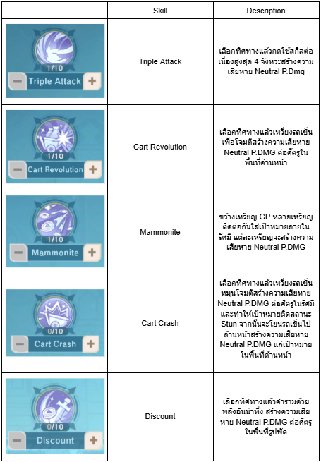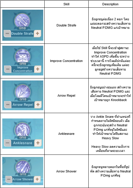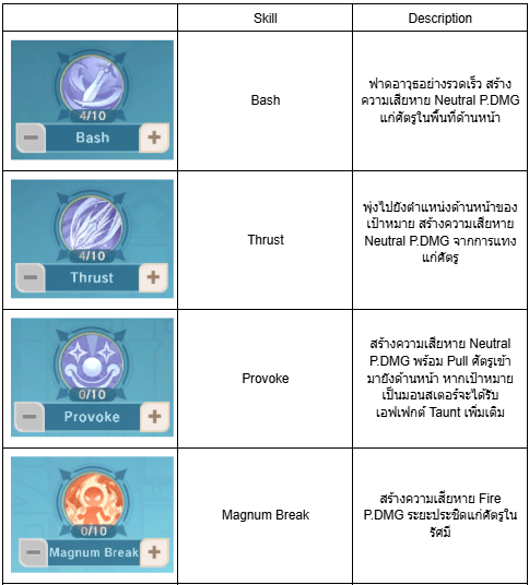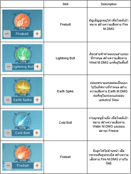 โดยในแต่ละอาชีพจะมีสกิลดังต่อไปนี้