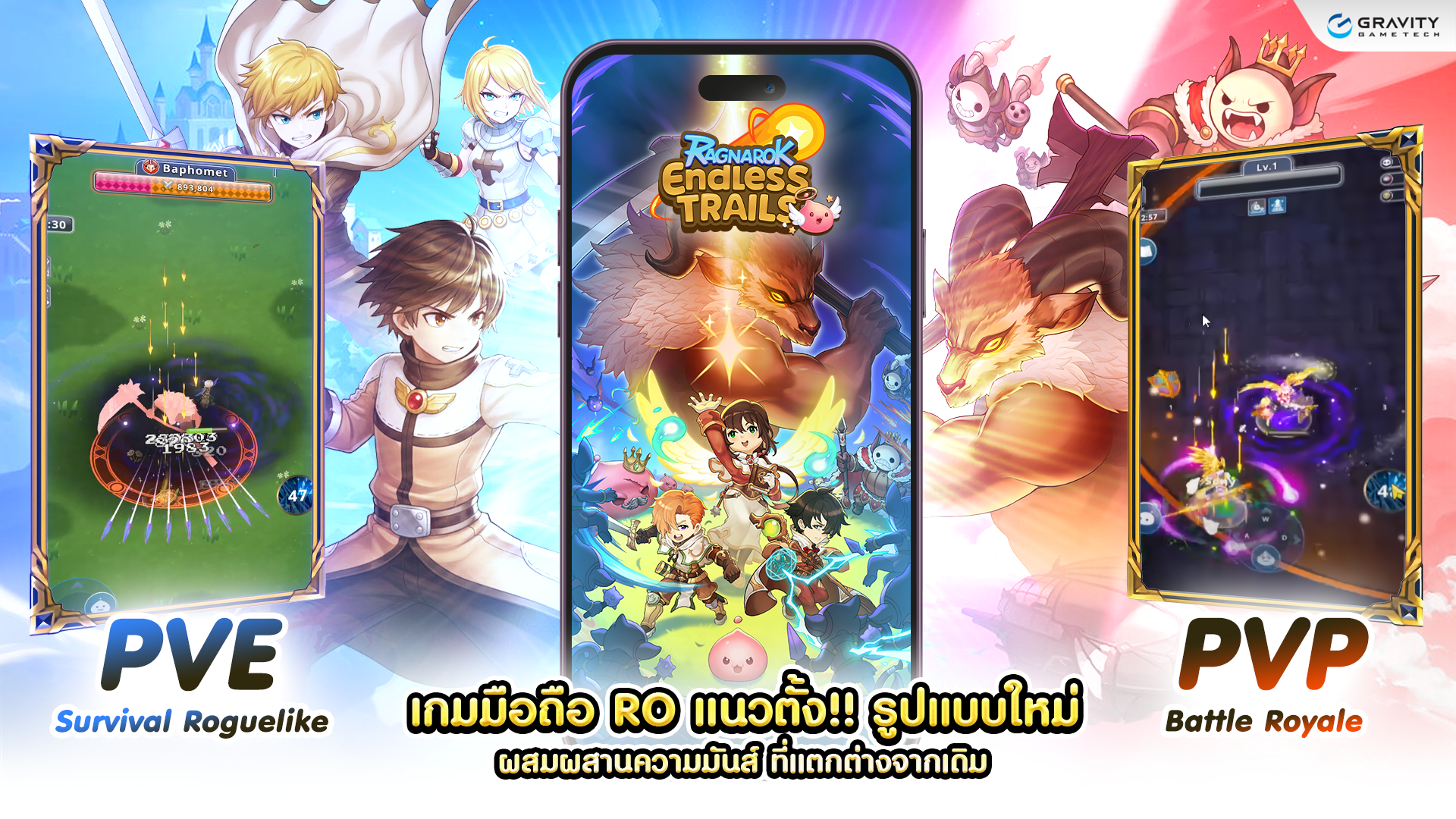 เปิดลงทะเบียนล่วงหน้าแล้ว!! สำหรับเกม “Ragnarok Endless Trails” จากบริษัท “Gravity Game Tech” ซึ่งเป็นเกมมือถือแนวตั้ง ที่จะผสมผสานการเล่น PVE แบบ Roguelike เข้ากับ PVP Battle Royale แบบเรียลไทม์ กลายเป็นเกมมือถือรูปแบบใหม่ ที่แตกต่างจากเดิมของจักรวาลแห่งแร็คนาร็อค ที่เคยมีมา ทั้งเล่นง่าย ใช้เวลาไม่นาน และจะได้พบกับความหลากหลาย ที่มีอิสระในการเล่น และกลยุทธ์ที่แตกต่างกัน รวมถึงโหมดเอาชีวิตรอด และการแข่งขันอย่างไร้ขีดจำกัด
