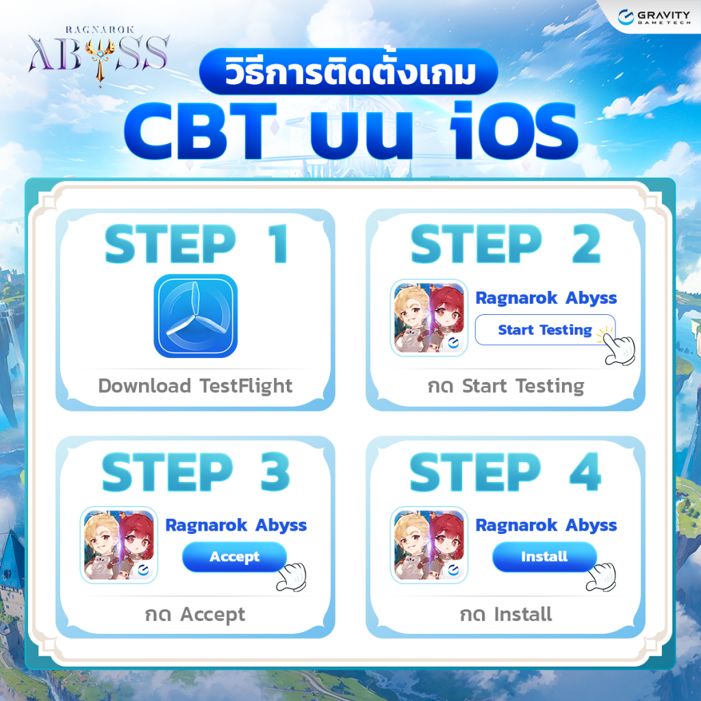 สำหรับผู้ที่ใช้ iOS สามารถเข้าร่วมทดสอบ CBT ได้ตามขั้นตอนดังนี้