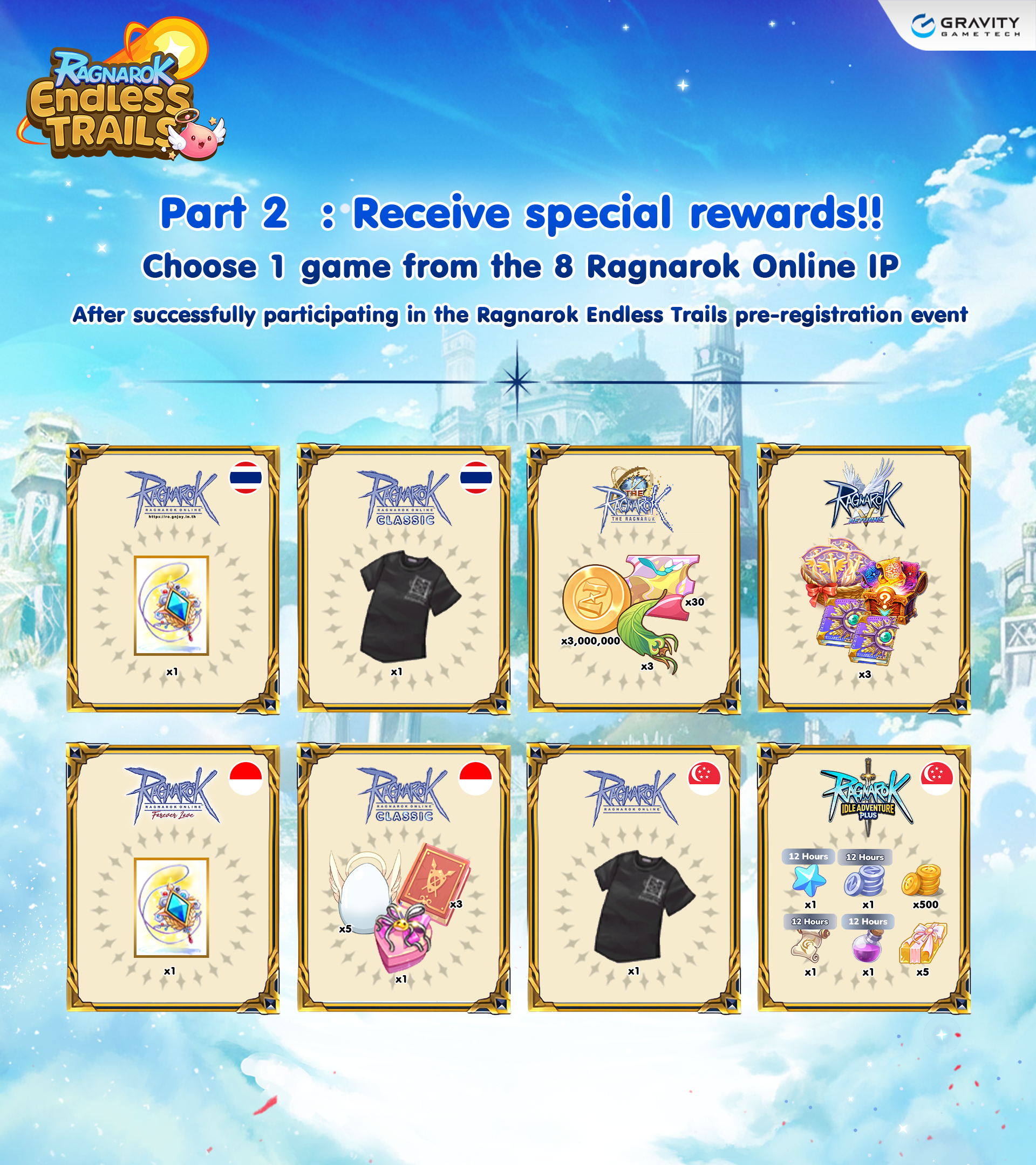 Choose 1 Game to Receive Special Rewards from 8 Ragnarok Online IP GamesTo be eligible, players must complete both website and mobile pre-registration, and submit their information via Google Forms at: https://forms.gle/QUg3A5h8zGKos1Ht7