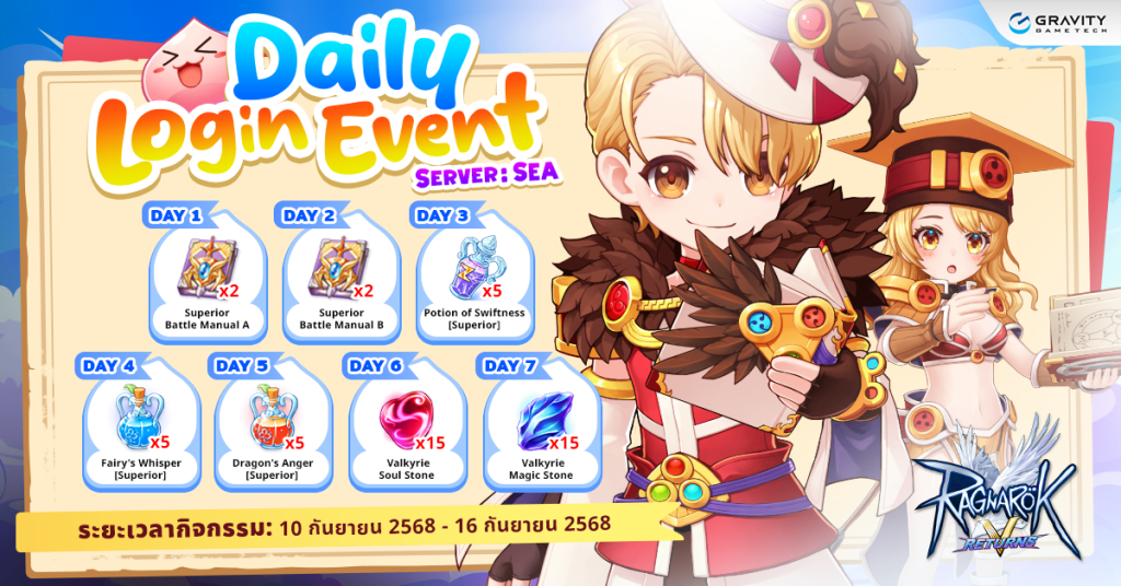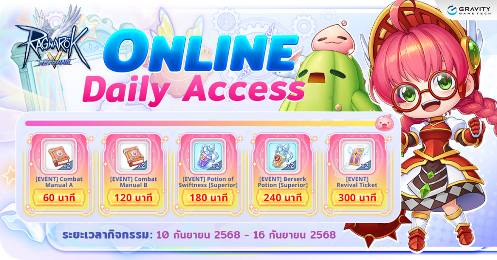 ระยะเวลา : 10 กันยายน 2568 หลังปิดปรับปรุงเซิร์ฟเวอร์ ~ 17 กันยายน 2568 ก่อนปิดปรับปรุงเซิร์ฟเวอร์