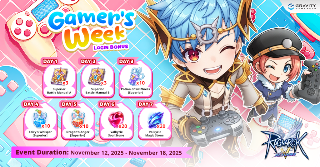 -. Gamers’ Week Login Bonus – Log in daily to receive special rewards throughout the week.