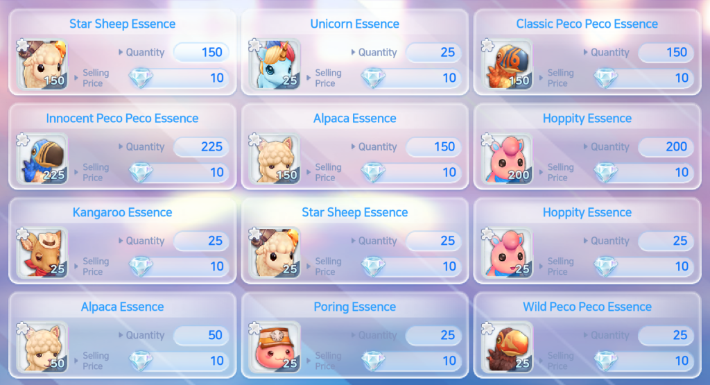 -. Atualização de Pilha de Troca – Essência de Mercenário e Essência de Mascote agora podem ser trocadas em pilhas de 25