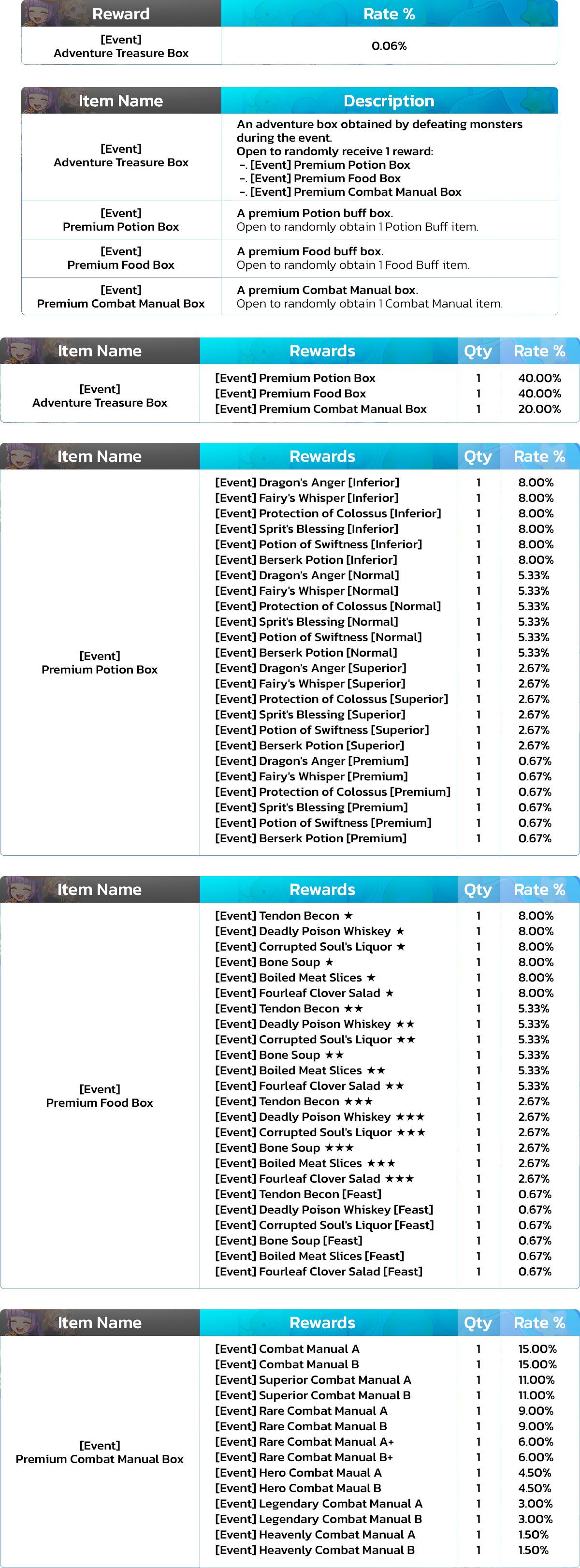 -. Players have a chance to obtain an Adventure Treasure Box by defeating monsters in normal field maps.