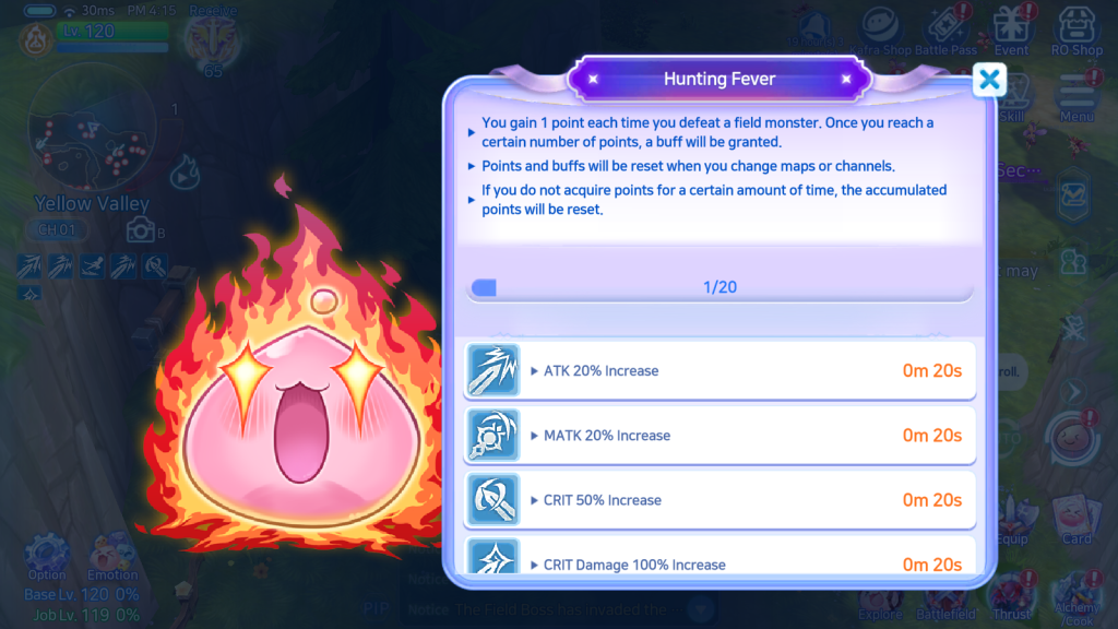 | 240 นาที | [EVENT] Berserk Potion [Superior] | 2 | น้ำยาสุดพิเศษ ช่วยเพิ่ม ASPD +16% [1 hours] | ||