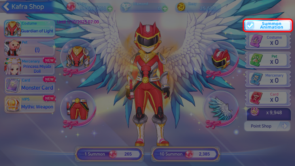 | 300 นาที | [EVENT] Pet Random Box | 1 | Random Pet – Classic Peco Peco Essence * 25 – Innocent Peco Peco Essence * 25 – Hoppity Essence * 25 – Alpaca Essence * 25 – Savage Essence * 25 – Poring Essence * 25 – Toad Essence * 25 | ||