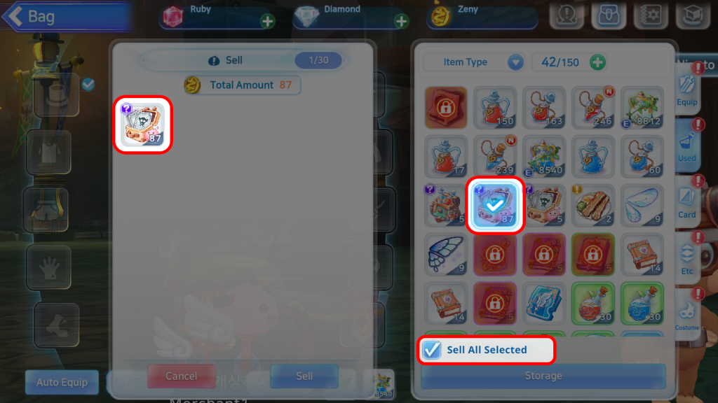 เพิ่มปุ่มขาย Item ที่เลือกทั้งหมด เมื่อกดปุ่มขาย Item