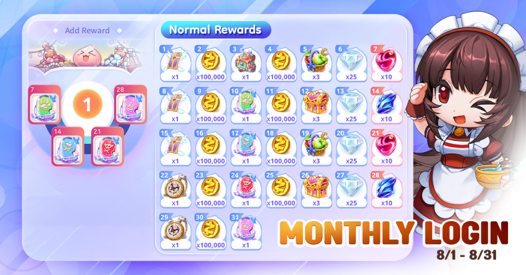 Evento de Login Mensal de Agosto: ganhe itens grátis todos os dias!