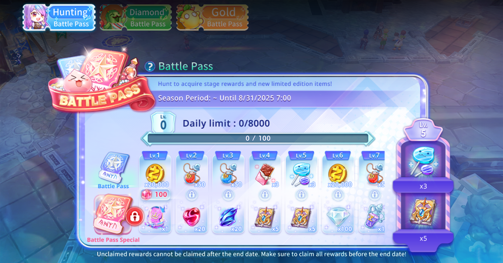 | 3 | [EVENTO] Manual da Batalha Avançado A | 5 | EXP de Base de caça +30% (1 h) |