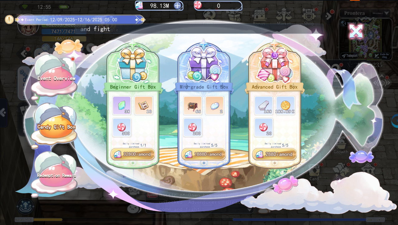 如果 Candy 不足,可通过 Candy 礼盒 购买更多 Candy!不仅可从礼包中获得 Candy,使用钻石购买时还可 额外获得 Candy,实现双倍获取!大幅提升兑换稀有特殊奖励的机会!