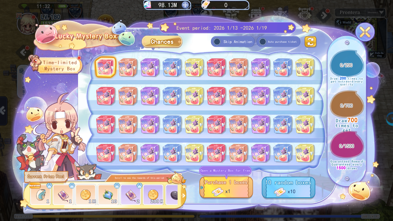 Get ready to open the Lucky Mystery Box for a chance to win the Legendary Pet, King Poring! And many hidden special items!