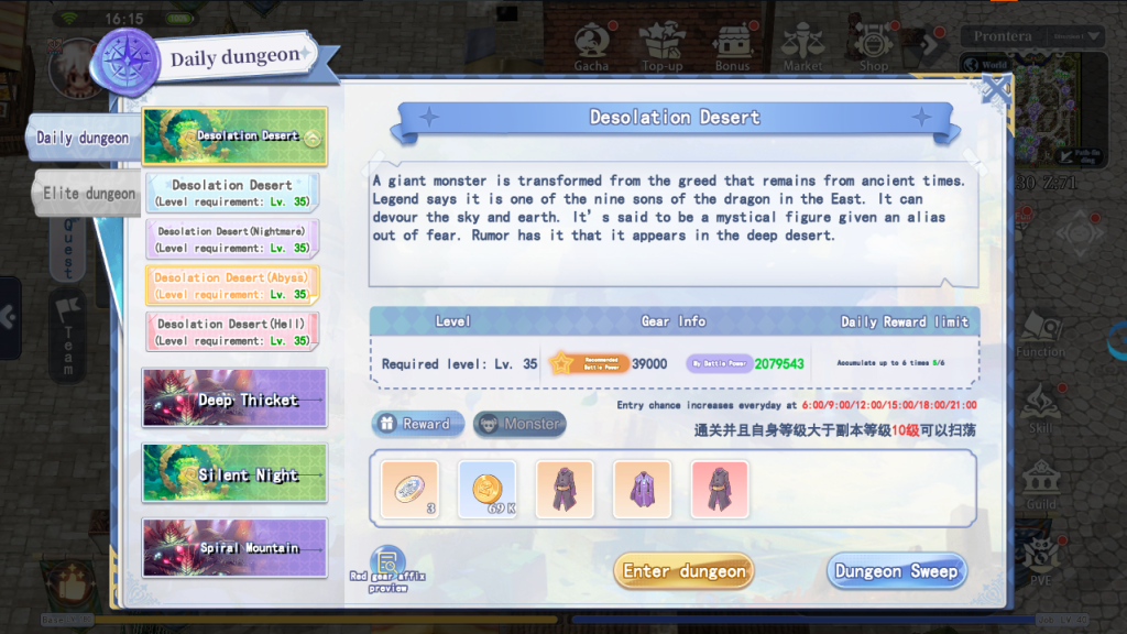 1. Optimized Daily Dungeon Sweep mechanics for Lv.135 and above