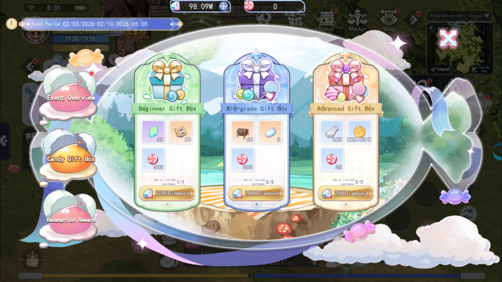 āļŦāļēāļ Candy āđ„āļĄāđˆāļžāļ­ āļŠāļēāļĄāļēāļĢāļ– āļ‹āļ·āđ‰āļ­ Candy āđ€āļžāļīāđˆāļĄāđ€āļ•āļīāļĄāđ„āļ”āđ‰āļ—āļĩāđˆ Candy Gift Box! āļ™āļ­āļāļˆāļēāļāļˆāļ°āđ„āļ”āđ‰āļĢāļąāļš Candy āļˆāļēāļāđāļžāđ‡āļ„āđāļĨāđ‰āļ§ āļĒāļąāļ‡āļŠāļēāļĄāļēāļĢāļ–āļĢāļąāļš Candy āđ€āļžāļīāđˆāļĄāļˆāļēāļāļāļēāļĢāđƒāļŠāđ‰ Diamond āđƒāļ™āļāļēāļĢāļ‹āļ·āđ‰āļ­āļ­āļĩāļāļ”āđ‰āļ§āļĒ āļĢāļąāļš Candy 2 āļ•āđˆāļ­! āđ€āļžāļīāđˆāļĄāđ‚āļ­āļāļēāļŠāđƒāļ™āļāļēāļĢāđāļĨāļāļ‚āļ­āļ‡āļĢāļēāļ‡āļ§āļąāļĨāļŠāļļāļ”āļžāļīāđ€āļĻāļĐāđ„āļ”āđ‰āļĄāļēāļāļ‚āļķāđ‰āļ™!