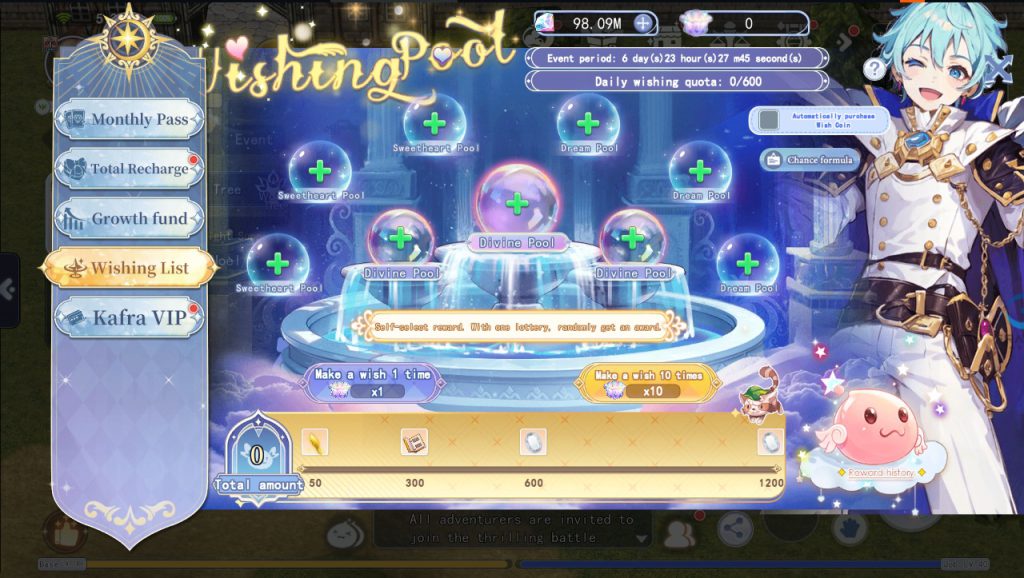 Wishing Pool yang menghadirkan hadiah mewah untuk para Adventurer, dengan total 9 jenis hadiah yang terbagi ke dalam 3 tier, yaitu: