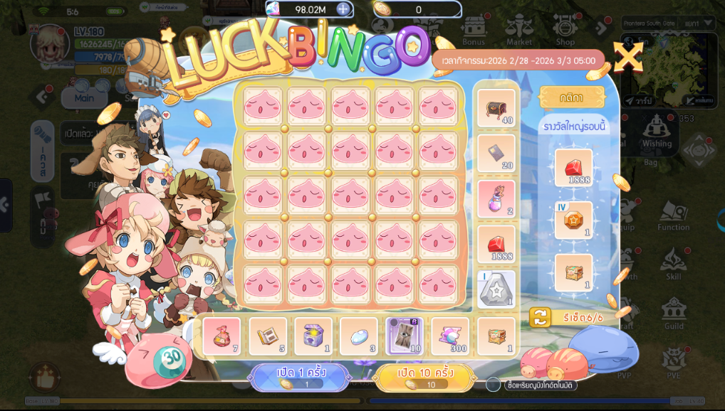 3.āļāļļāļāļāļēāļĢāļŠāļļāđāļĄ Lucky Bingo āļāļ°āđāļāđāļĢāļąāļāļĢāļēāļāļ§āļąāļĨ 2000 Zeny