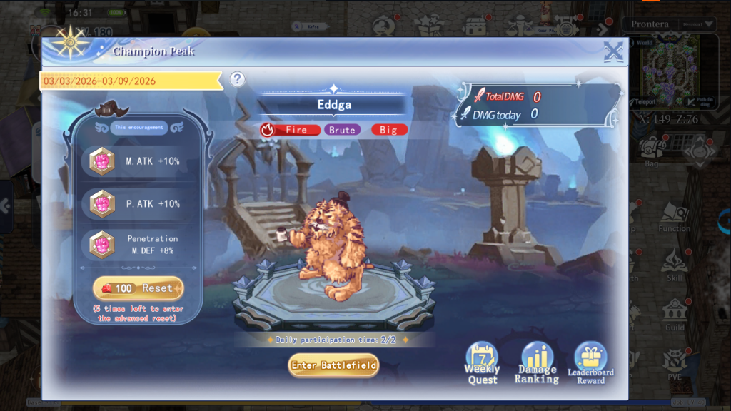 3. Pemain dapat mengikuti dungeon 2 kali per hari. Ikuti jumlah partisipasi yang ditentukan untuk memperoleh hadiah mingguan.