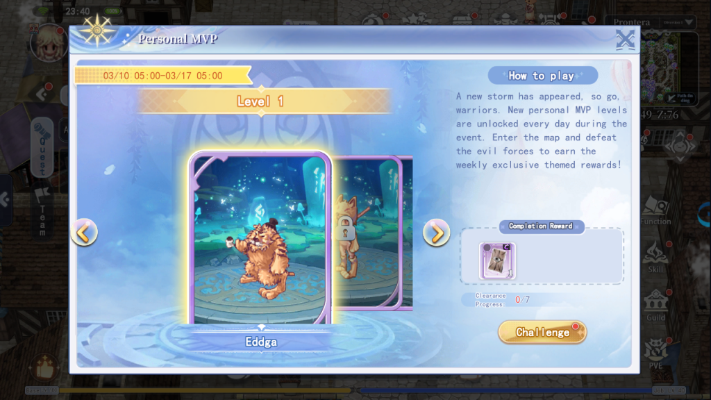 Challenge the MVPs in classic Ragnarok style with 1-on-1 battles, divided into 7 levels as follows: