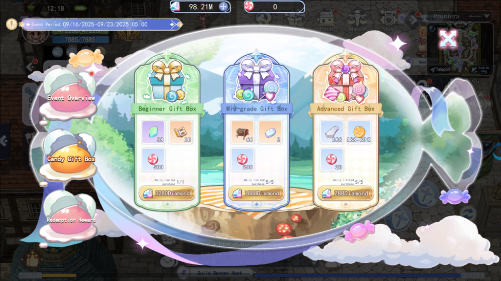 Jika Candy tidak cukup, kamu bisa membeli Candy tambahan di Candy Gift Box! Selain mendapatkan Candy dari paket, kamu juga bisa menerima Candy tambahan dari penggunaan Diamond saat membeli. Dapatkan Candy dobel! Tingkatkan peluang untuk menukar hadiah spesial lebih banyak lagi!
