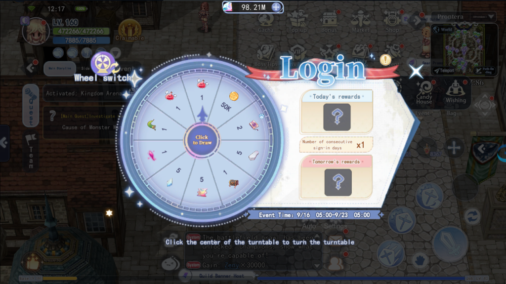 1.Setiap login harian, pemain akan mendapatkan 1 kesempatan untuk memutar roda. Setelah diputar, hadiah akan diterima.