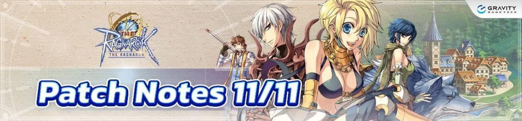 Server The Ragnarok telah menerima pembaruan patch tanpa penutupan server pada tanggal 11 November untuk memperbarui konten baru sebagai berikut.