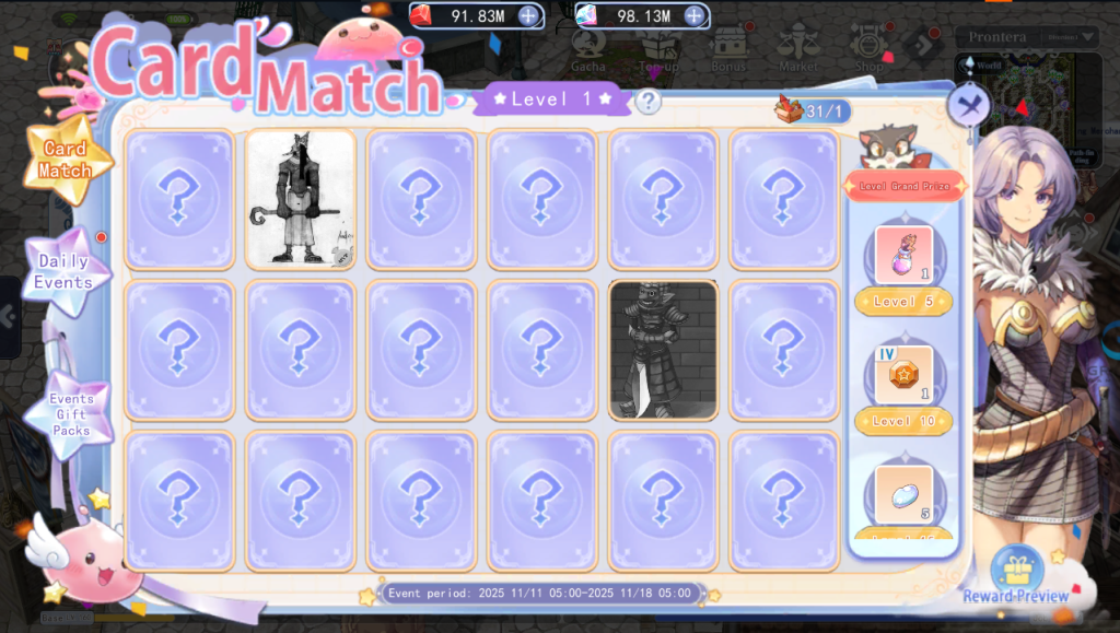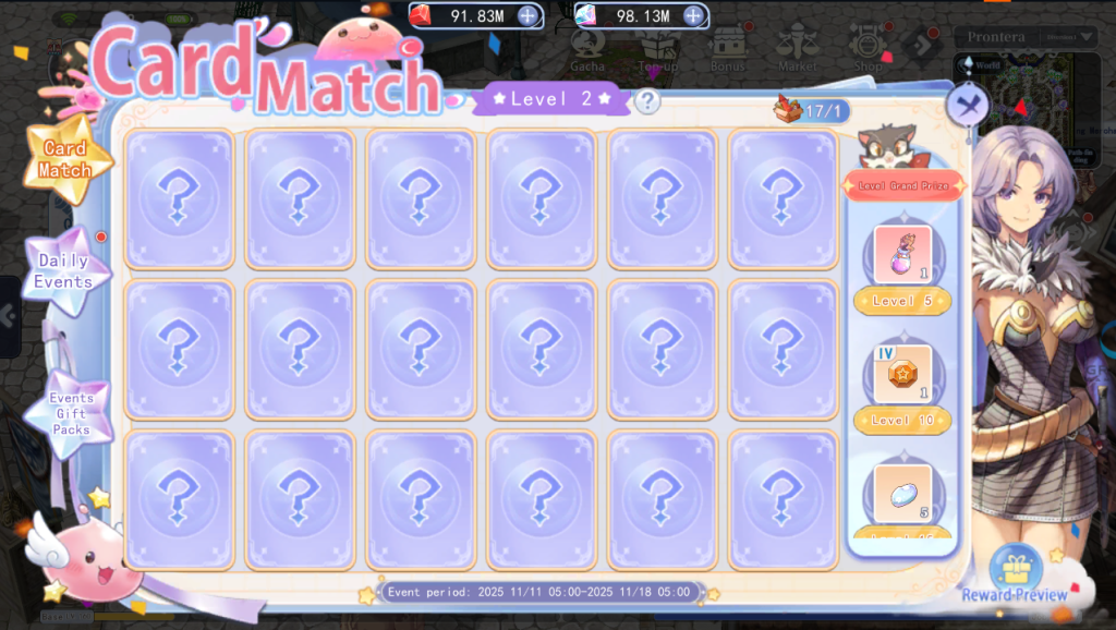 Cukup cocokkan 2 kartu dengan jenis yang sama untuk langsung mendapatkan hadiah spesial! Semakin banyak kartu yang berhasil dicocokkan, semakin banyak hadiah yang bisa kamu peroleh — dan setelah menyelesaikan ronde spesial, kamu juga bisa mendapatkan item eksklusif tambahan!