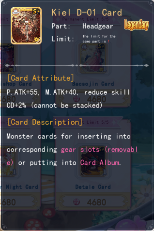 P.ATK+55 , M.ATK +40 , ลด CD Skill +2%(ทับซ้อนไม่ได้)