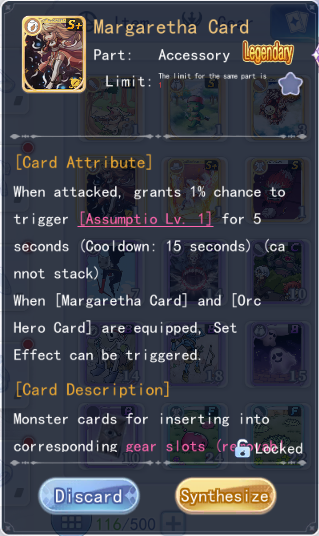 Saat mengenakan Margaretha Card dan Orc Hero Card, akan memperoleh peningkatan VIT dan Max HP.