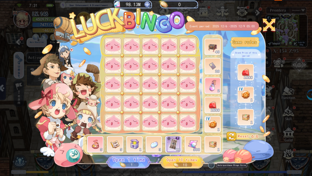 3. Every Lucky Bingo draw grants 2,000 Zeny as a reward.